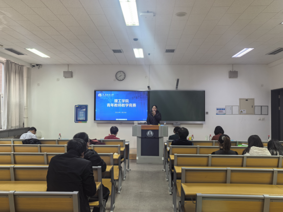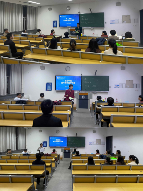 比赛环节中,6位参赛青年教师依照赛前抽签顺序,现场确定参赛课程的1个教学节段,以“无生上课”的形式展开教学展示,每人限时20分钟。各位教师充分结合自身教学特点,在教学内容设计、教学组织实施、教学语言表达、教态仪表展现等方面精心筹备,呈现出各具特色的教学风格,展现了扎实的教学基本功和良好的教学潜力,取得了良好的展示效果。