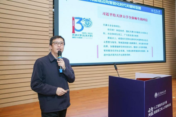 作为论坛首位分享嘉宾,天津大学智能与计算学部教授、博士生导师于瑞国带来“人工智能赋能高校教育数字化转型发展的探索与实践”主题分享。他系统解读学校以“数据、算法、算力、算网”构建的教育数字化新型基座,包括多型号国产大模型的本地化部署,展现坚实技术支撑。并结合“程天学”导学平台个性化路径规划、校情数据决策平台效率优化等场景,呈现人工智能在智慧教育场景落地的完整链路。