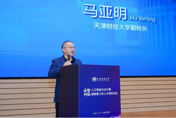 论坛伊始,天津财经大学副校长马亚明发表致辞,代表学校向兄弟院校专家学者与支持学校发展的各界同仁致以欢迎与感谢。马亚明副校长表示,举办本次论坛旨在汇聚各方智慧,探索产教融合、科教融汇与财经学科交叉的人才培养改革路径,助力学生构建适配新时代发展的知识与能力结构,更好地服务国家发展战略,推动京津冀协同发展与天津市高质量发展,恳请专家奉献真知,预祝论坛圆满成功。