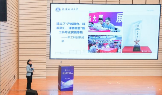 天津财经大学理工学院副院长何丽结合学校“新财经”发展战略,分享了财经类新工科专业人才培养实践。介绍学校三个工科专业均已获批天津市新工科重点建设专业,秉持跨学科融合与产教融合的教育理念,重构课程体系,打造“AI+财经”“计算机+信息工程”交叉课程群,设置数智财经等三大模块及“AI+金融”微专业。并与企业共建实习基地,目前已有多项成果落地。