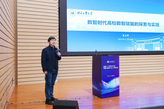 河北工业大学人工智能与数据科学学院教授董永峰立足学校“工学并举”特色,分享了“数字时代高校数智赋能的探索与实践”。介绍了学校构建“数据为王”的智慧校园架构,已建成含3.3万张数据表、48亿余条数据的大数据中心,并实现了跨系统数据共享;在教学上打造全景沉浸式教室、“云控实验平台”及个性化学习系统,学校获评河北省首批数字校园示范校。