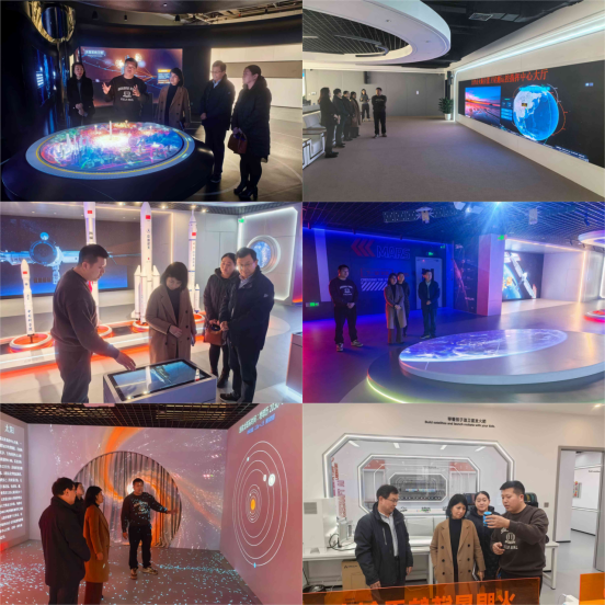 在火眼星链航天创客中心董事长黄梁、场馆运营经理杨娜的带领下,学院一行参观了公司展厅。黄梁董事长详细介绍了企业核心业务与科创布局,引领大家观摩了智慧巡检、无人机、智能驾驶、测量测绘、水利监测、智慧工地、天罡卫星系统等多元应用场景,实地考察了天津市火眼位置卫星测运控指挥中心大厅,火眼星链航天创客中心、火箭实验室、航天器AI实验室等多个特色科创平台,让学院一行全面感受到企业在航天导航、智能科技领域的硬核实力。